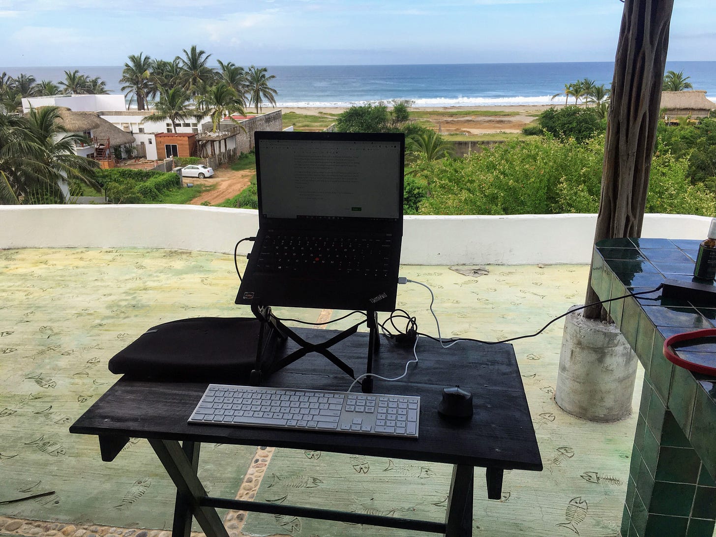 Invest in things that help you get into a routine in a new location. For me, its traveling with a $5 pour over coffee maker and some filter paper and a laptop stand, mouse and keyboard. I was able to set up and start writing this newsletter this morning in less than five minutes.