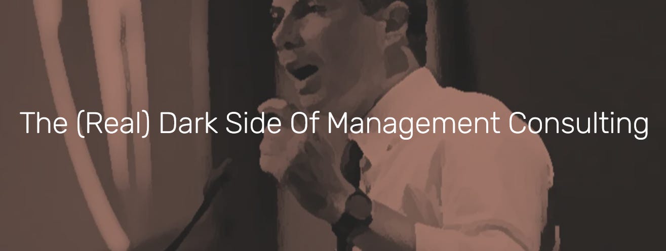 I wrote about this in an essay published earlier this year titled The (REAL) Dark Side of Consulting in which I dive into the “subtle and deeper issues that are fundamentally not solvable and are the shadow side of the ultimate success of the industry.”