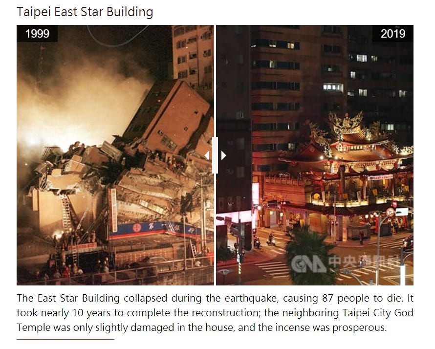 Pictures 20 years later from a major earthquake here in Taiwan