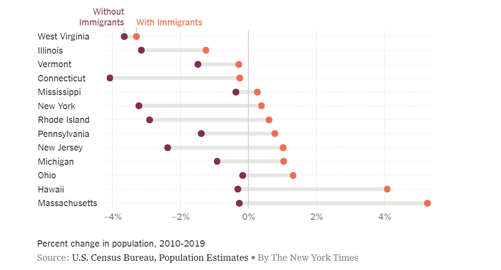 Another fascinating factor in the US is how much some of the states are propped up by immigration. My home state, Connecticut, would be struggling even more than it already is if it didn’t have as much immigration as it does.