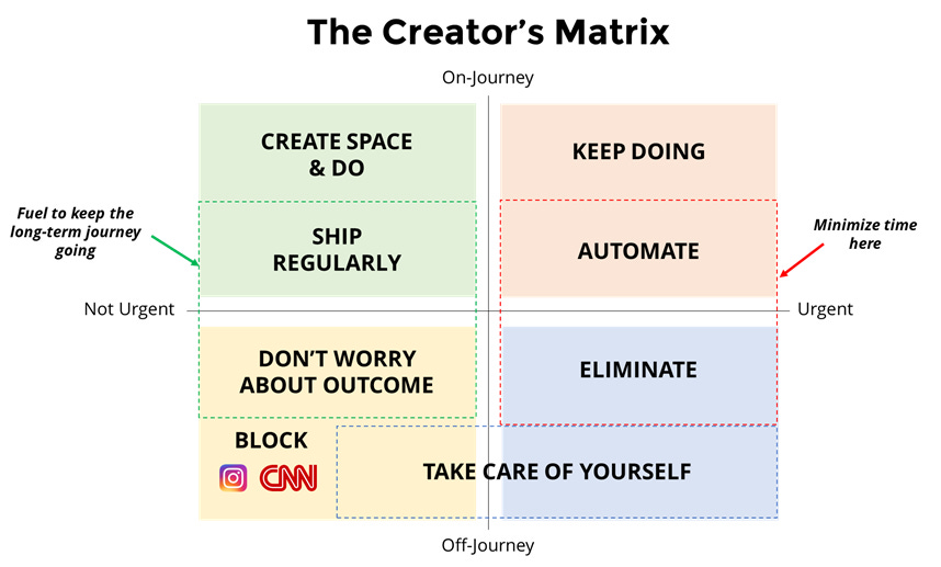 I was playing around with a creators version of the Eisenhower Matrix. Here is what I came up with. What would you change?