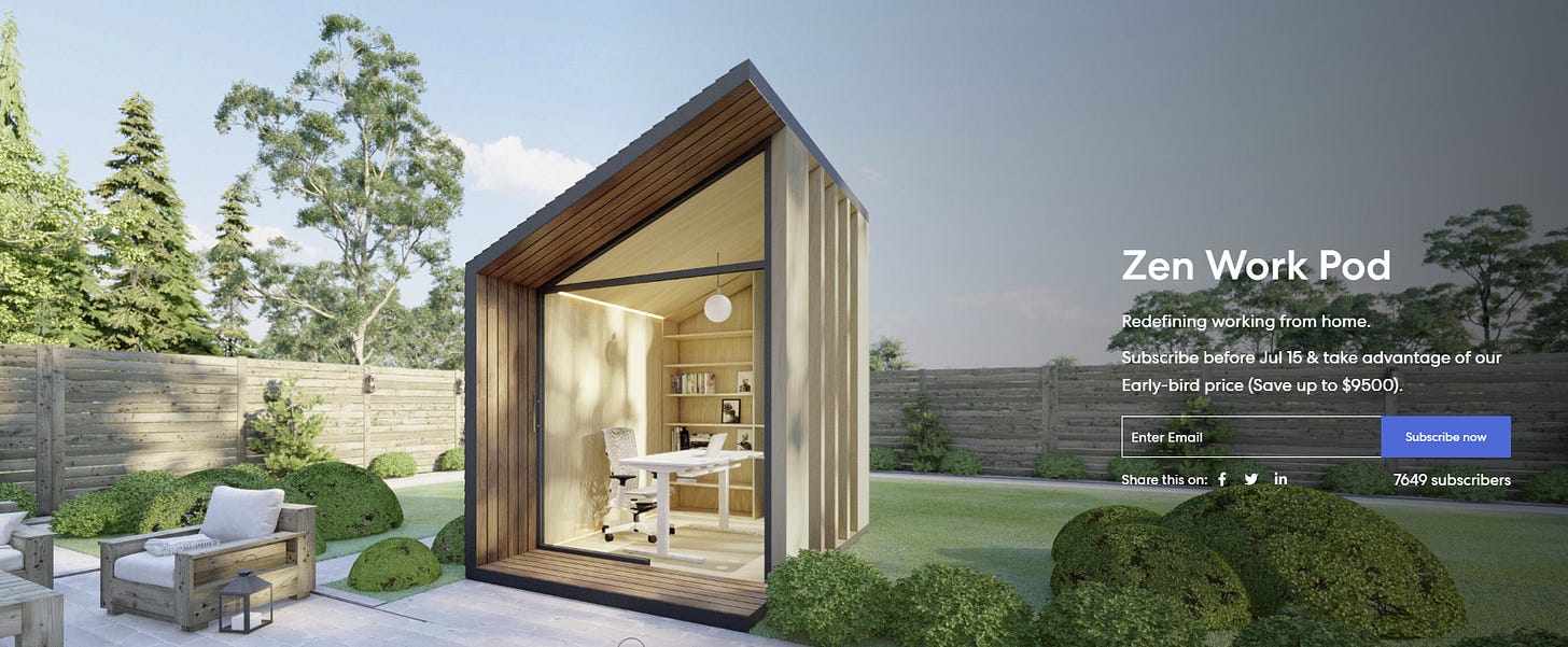 Many people do not like working in their home. I think weâll see a lot of creative solutions to the âbackyard officeâ and other third places that are better than just working from a co-working space or coffee shop. Consider the Zen work pod: