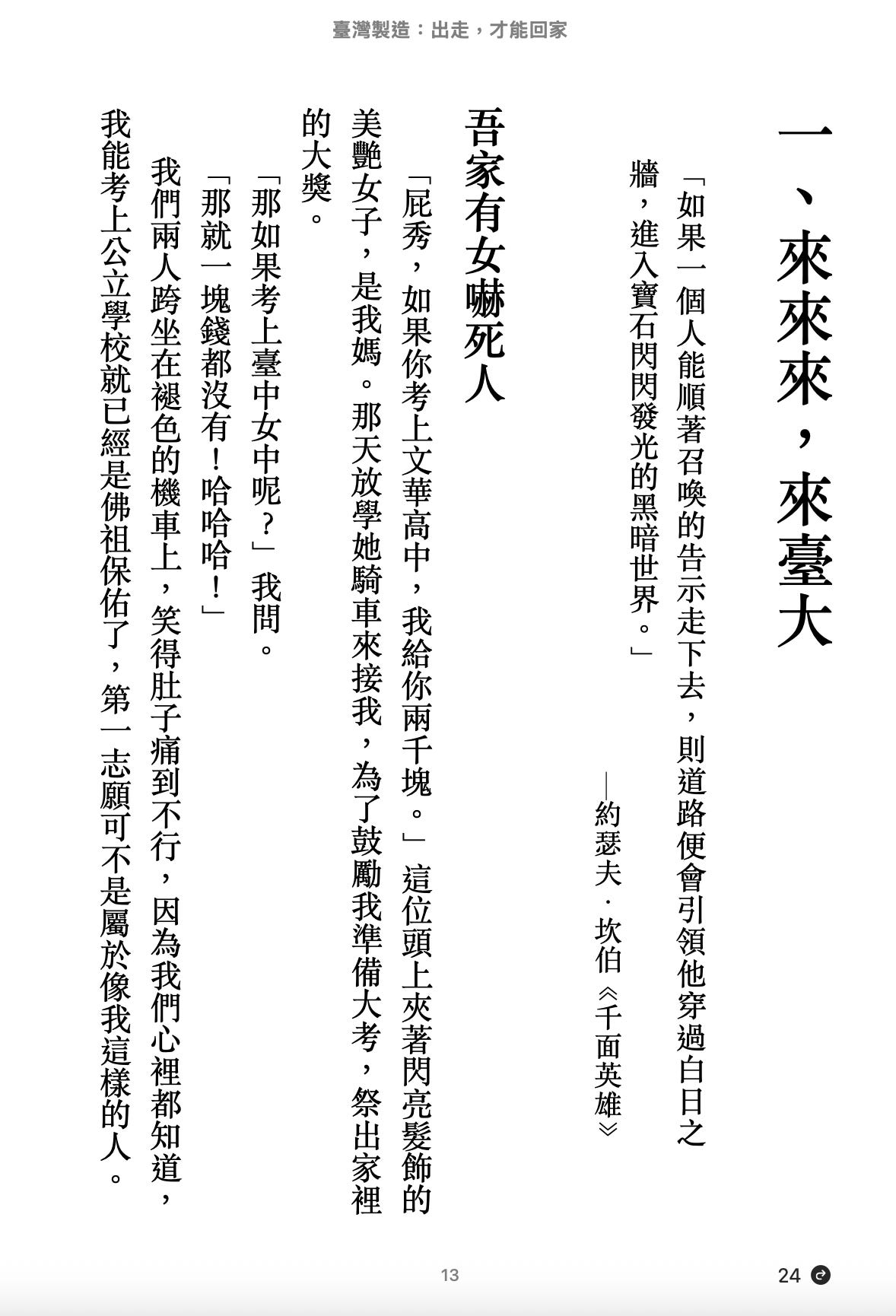 #4 Publishing Chinese EPUBs and Print Books: Angie is self-publishing her book in Taiwan. We have a partner helping with print distribution in Taiwan but had to setup the EPUB and print-on-demand versions everywhere else. This was much more challenging than I expected because Traditional Chinese is typically read right to left, top to bottom. A typical page looks like this: