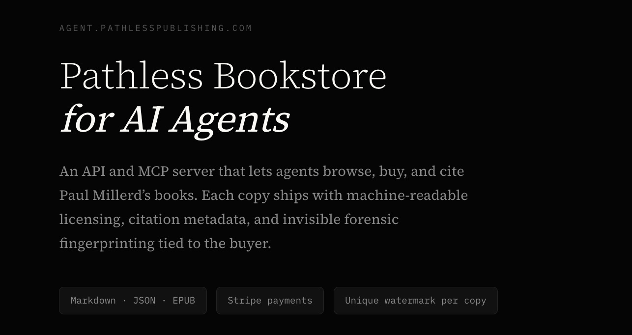Browse the catalog at https://agent.pathlesspublishing.com/api/catalog