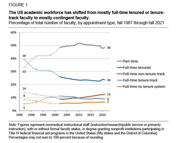 To hide the fact that promotions are no longer guaranteed, companies have developed “alternative” paths. Academia now has adjunct professors:
