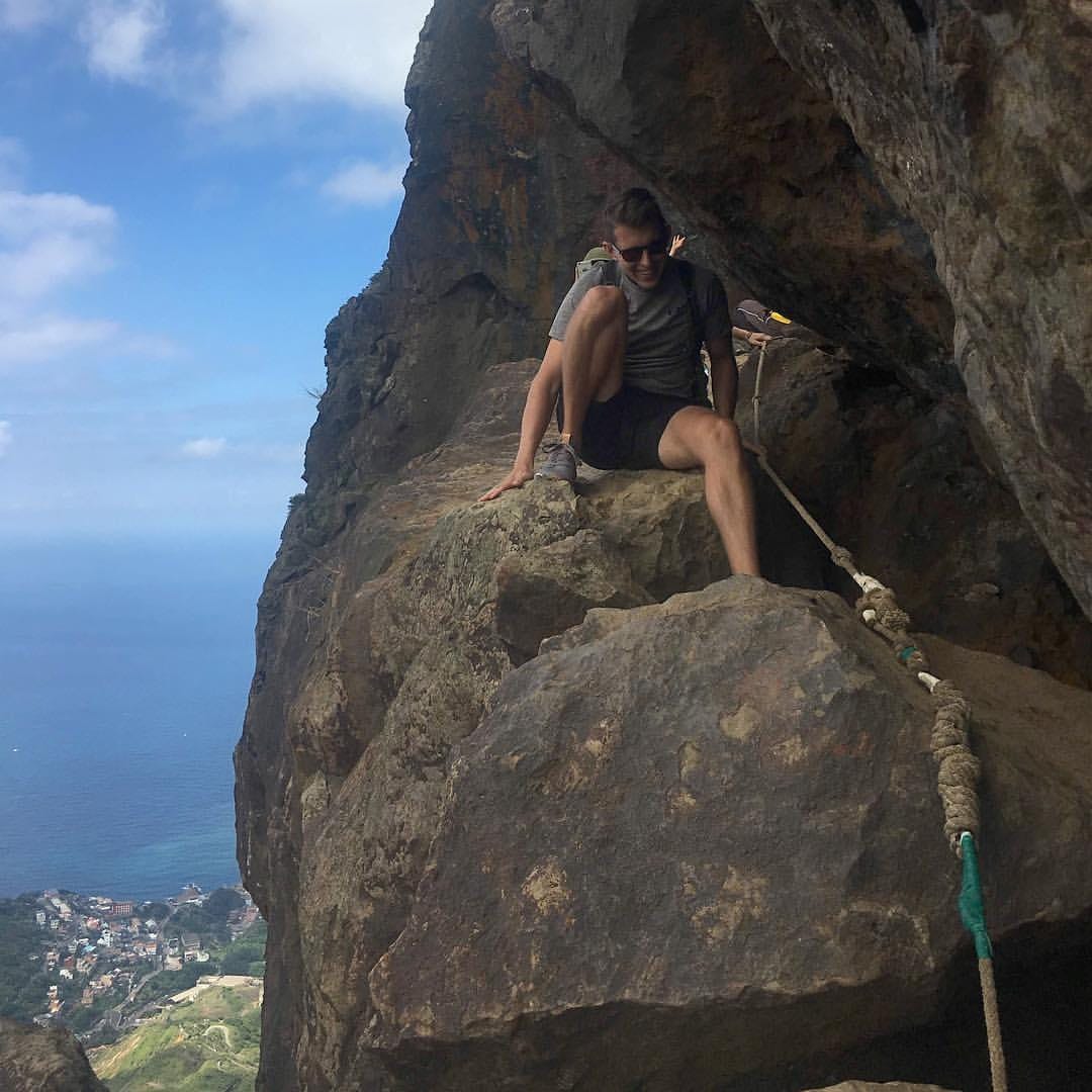 A picture of me climbing over a rock