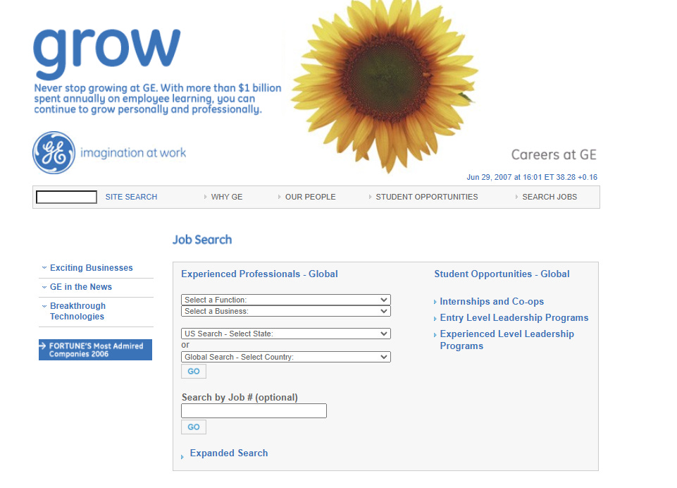 In 2007, when I graduated, this was the extent of GE’s career page