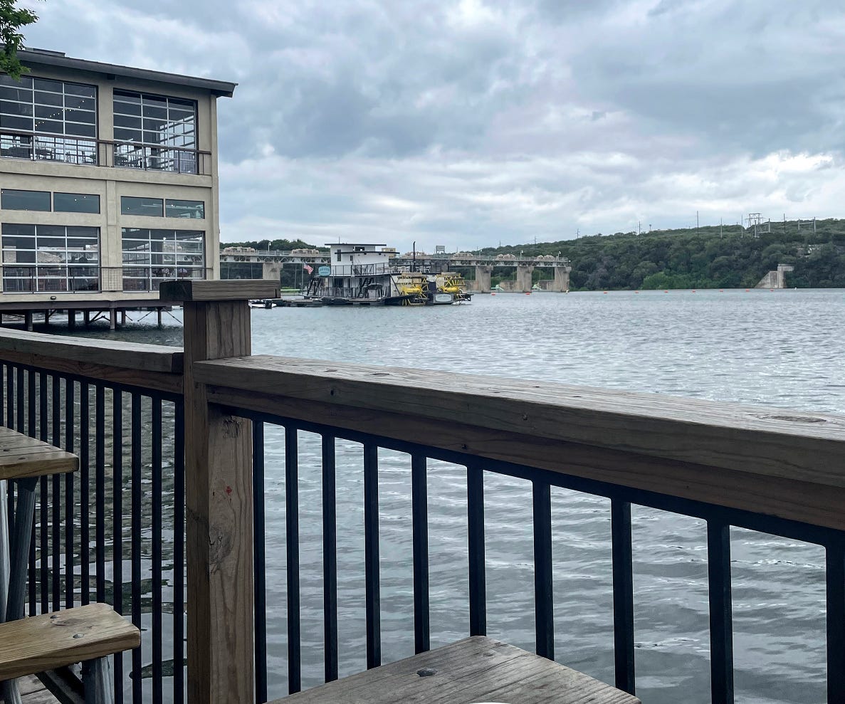 So last week I had no plan. Nothing on the calendar. No work to do. I wake up and wander and see where the day takes me. On Monday I left on a bike and ended up at a cliff overlooking Austin. It was beautiful and I was once again reminded that our world is beautiful. On the way back I decided to grab a coffee and sit outside staring at the river for a while. It was nice.