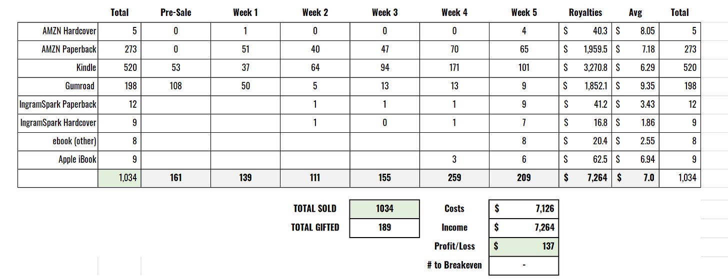 ššš Book Update - Sold Over 1k Copies and Broke Even!