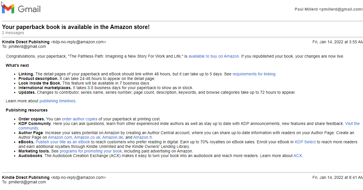 I had not prepared an e-mail sequence, marketing materials, or anything. I changed the kindle launch date to three days later so I could do a proper “launch.”