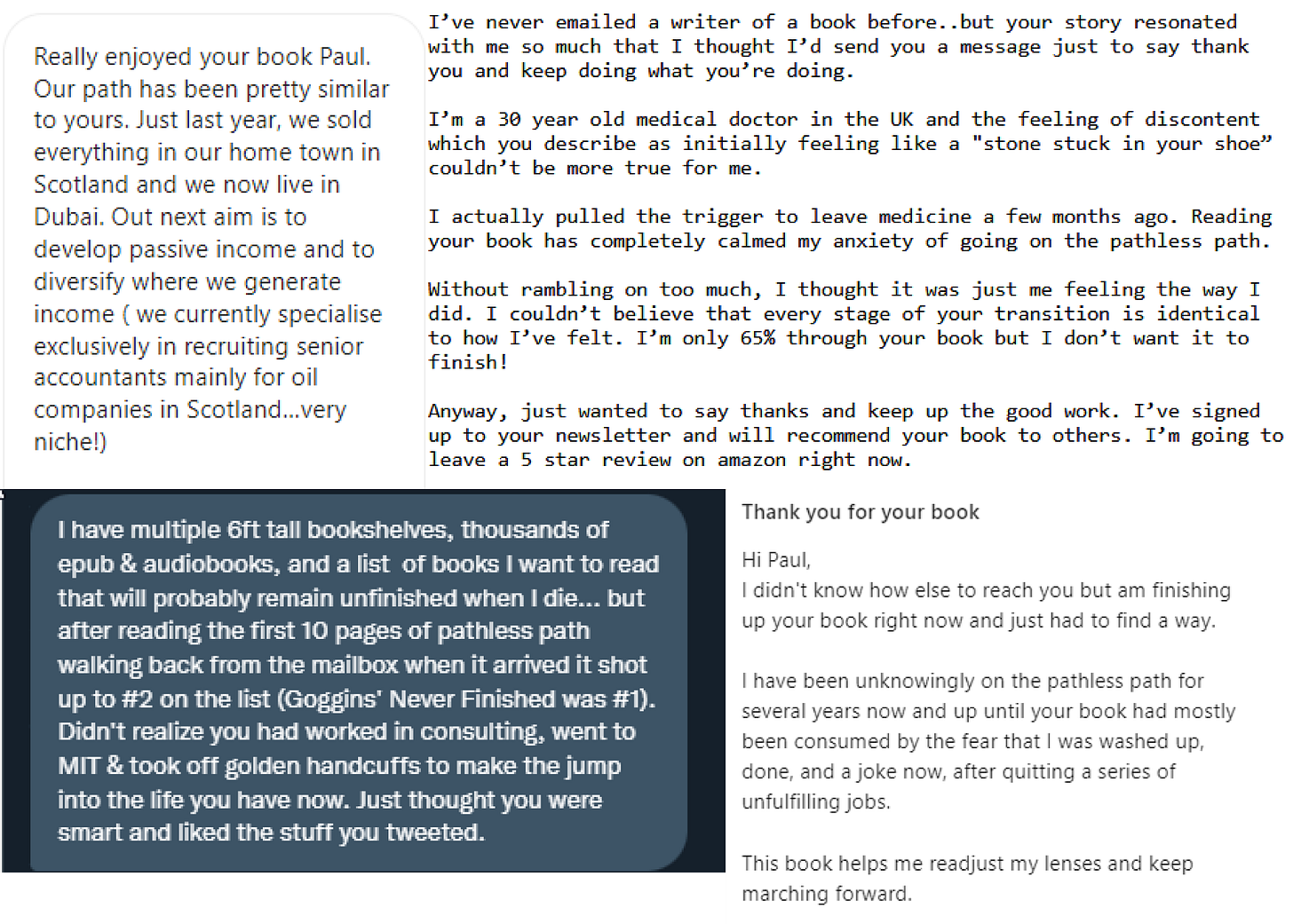 The BEST part of writing the book is the flood of messages I have received. Almost every day I receive a message like this across every platform. People feel the urge to reach out and tell me about their experiences.