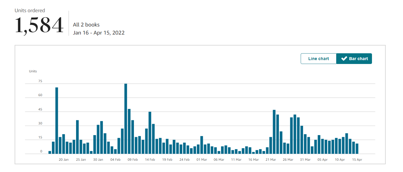 In the first month I finally talked to a few people that knew how books worked. Someone I knew that had worked at Scribe Media told me that 1,000 books in 100 days is one of the most important metrics. Because if you can hit 1,000 it gives you a chance of word of mouth taking off.