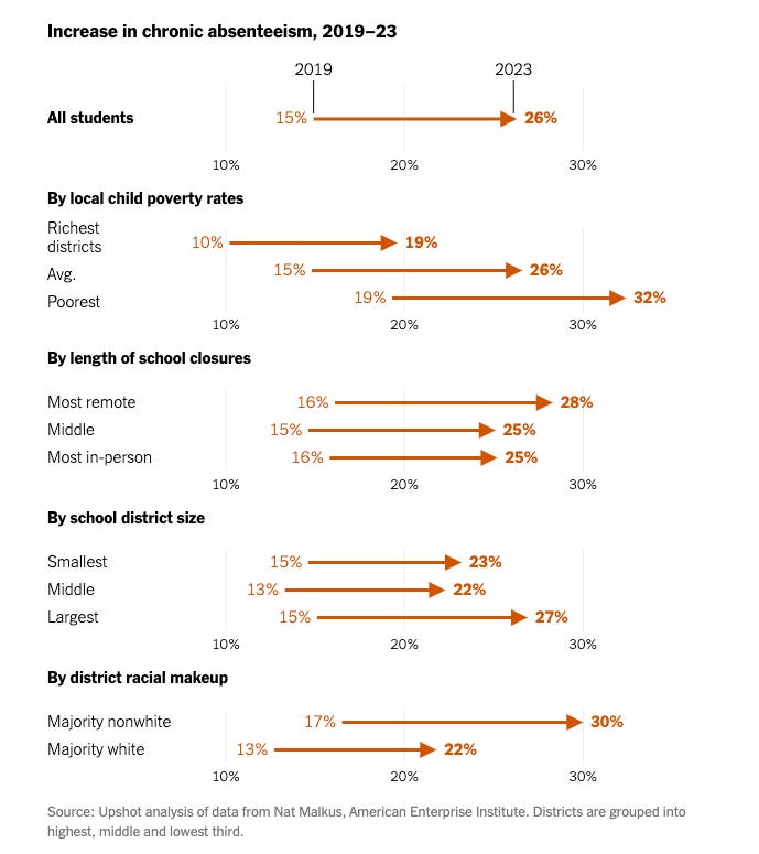 It seems the school is now optional. Chronic absences have skyrocketed since the pandemic in every demographic across the board in the US.