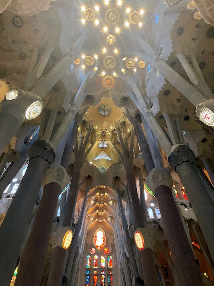 November 18th, 2023: Greetings from Barcelona! We made it to the La Sagrada Familia this week, and wow. The inside has been closed in my past visits so it was great to be able to make it inside. The way the light flowed through the building and how the pillars took the form of trees is hard to describe. It’s magnificent. This crappy picture really doesn’t do it justice, but is the best one I got:
