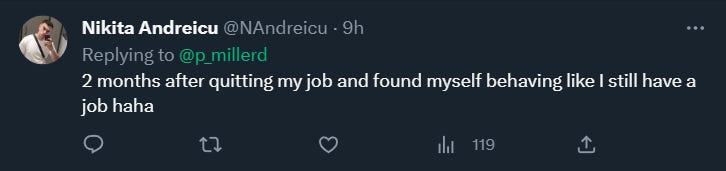I’m always impressed by younger people who have left the default path much earlier with less experience than me. These people almost always seem to find their way much quicker than I was able to. I sense these people rarely ever think in terms of what they might lose and this is one of the best cases for betting on yourself much earlier. More simply, if you have a deep fear of losing your edge, you are probably right.