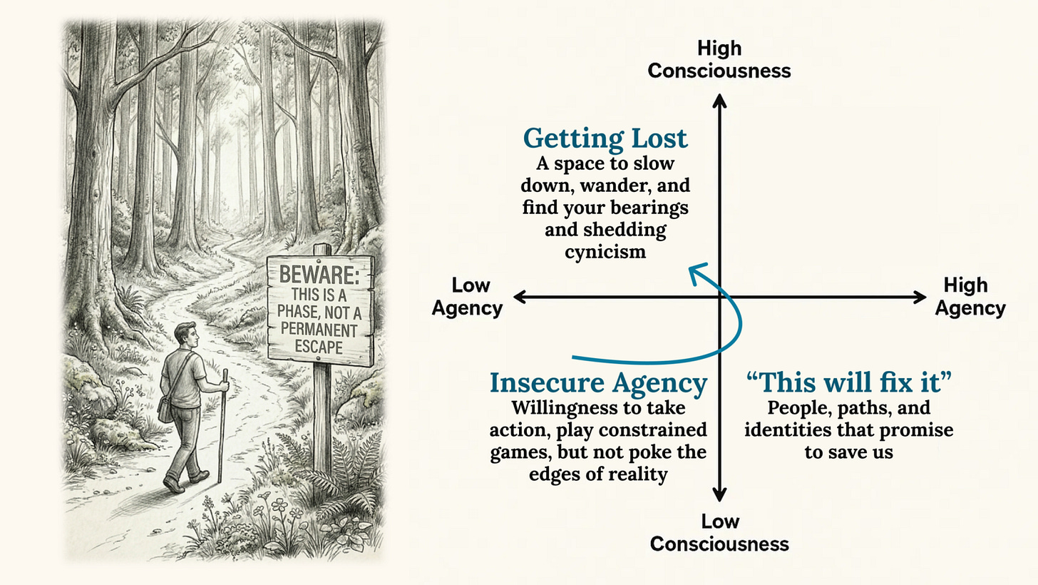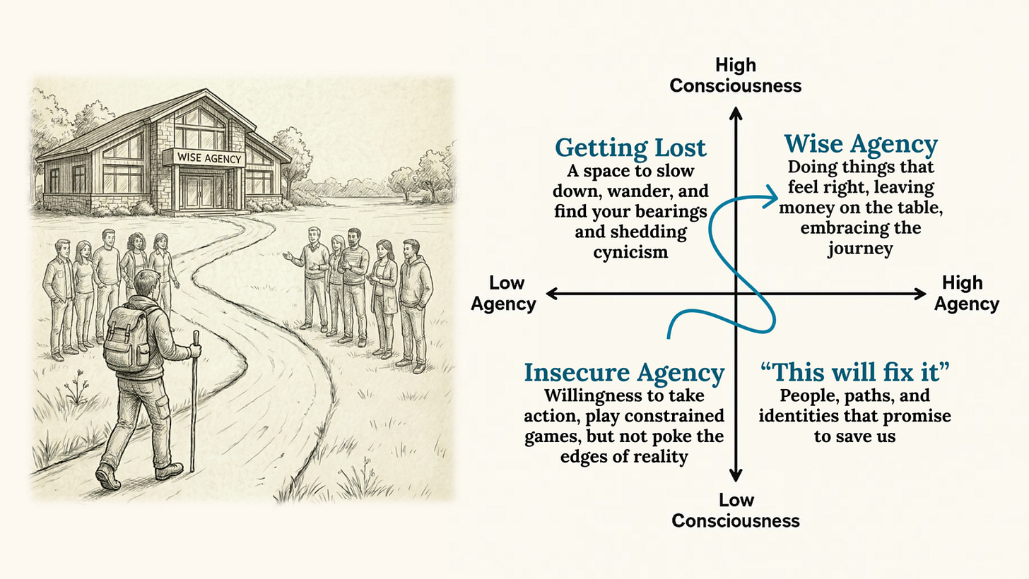 Wise agency is about knowing that the path forward in the world is usually just about surrendering to the work and ways of life that become more obvious over time, through simply continuing to show up in the world.