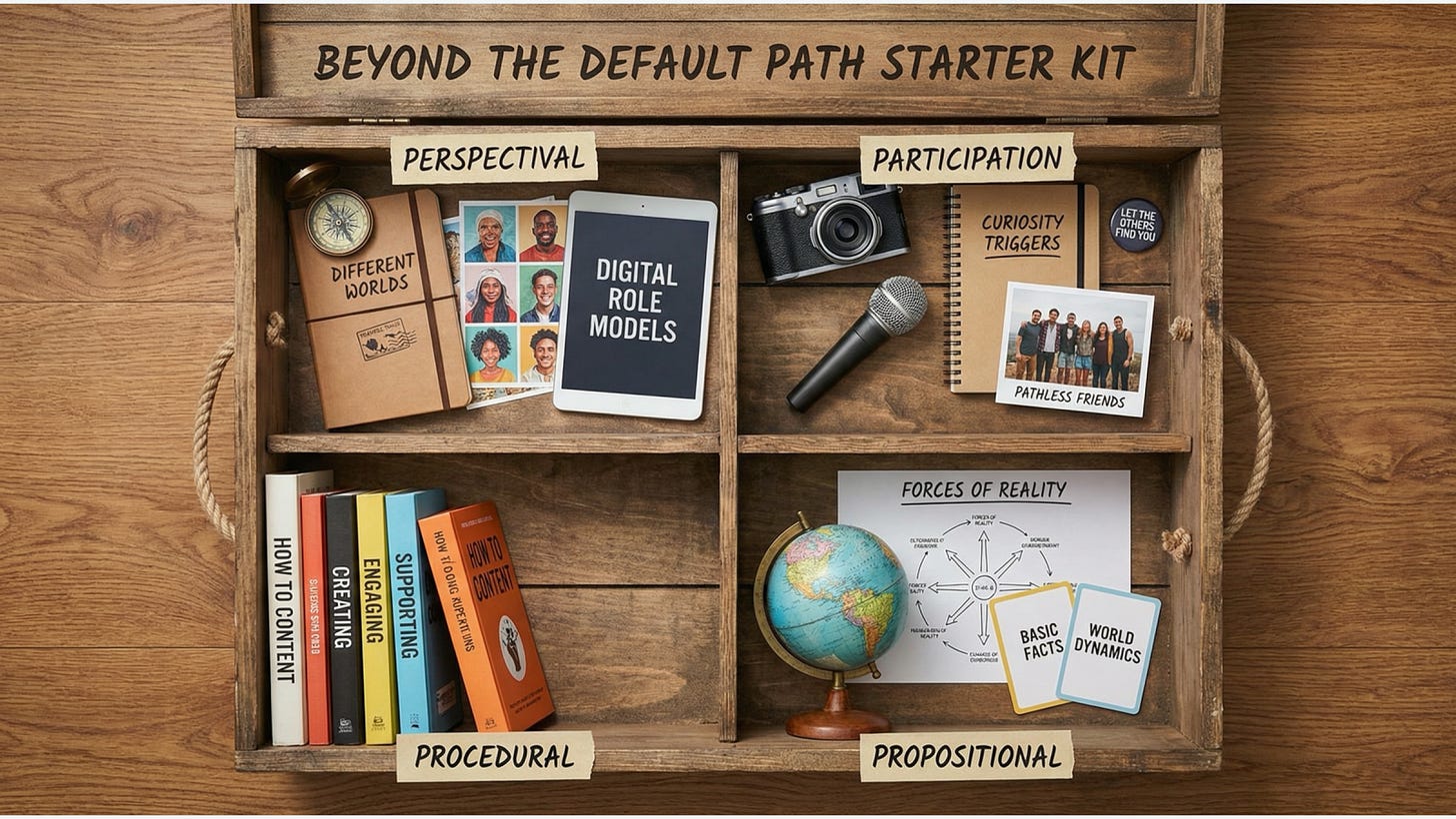 A movement toward wise agency requires embracing all four and then continuing to engage in these throughout life, ideally moving away from the propositional and procedural as you learn more about yourself and the world.