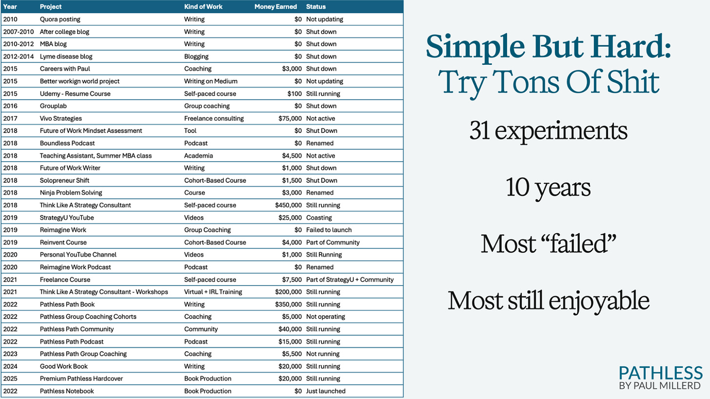 Here are dozens of the legible experiments I’ve tried over the past ten years, most of which have “failed”: