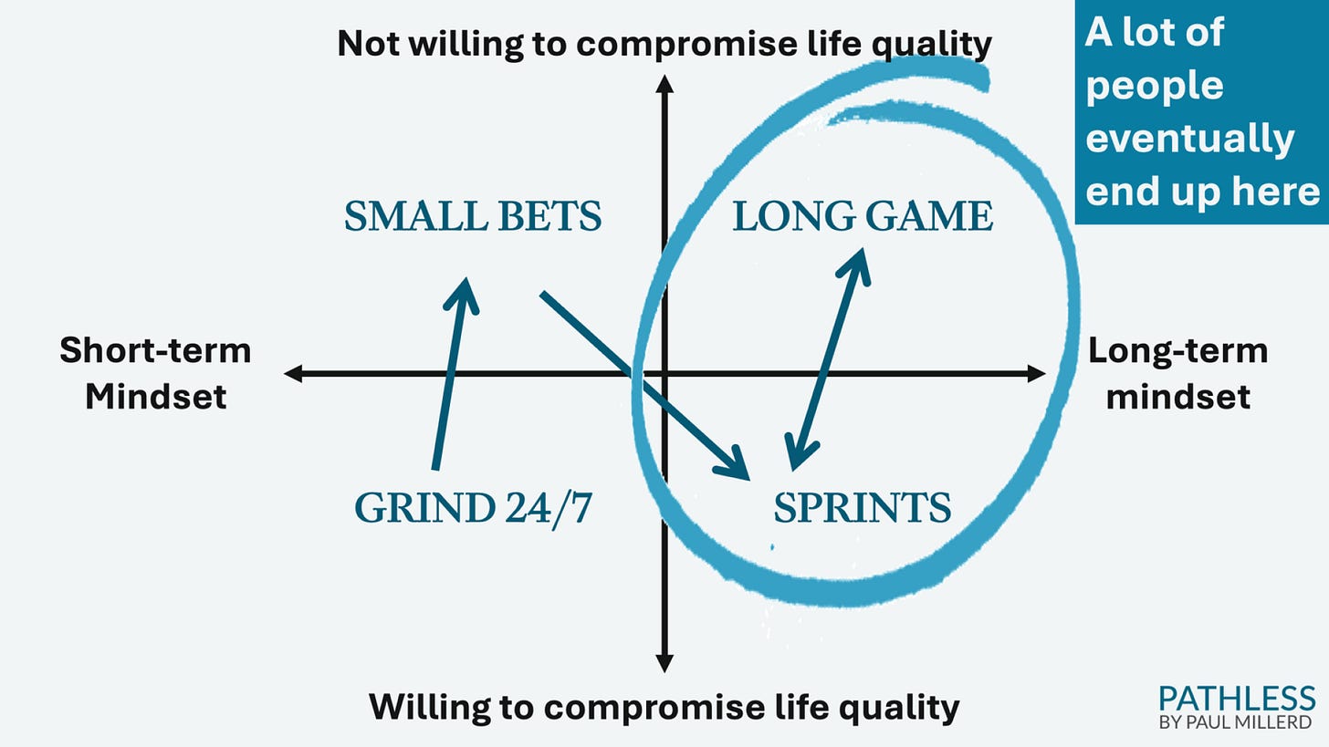 This only “worked” for me because, along the way, I was enjoying what I was doing, getting better at selecting projects, and becoming wiser about a meta-game I was participating in.