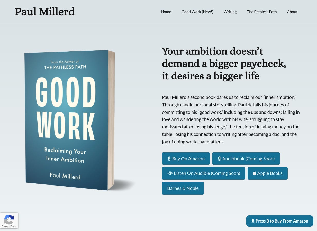 I launched a simple book site this week. It’s clean, simple and has a nice testimonial section (you can add yours), has a free copy of the intro, and has this fancy “hit B to buy now” button I copied from Ali Abdaal’s book site: