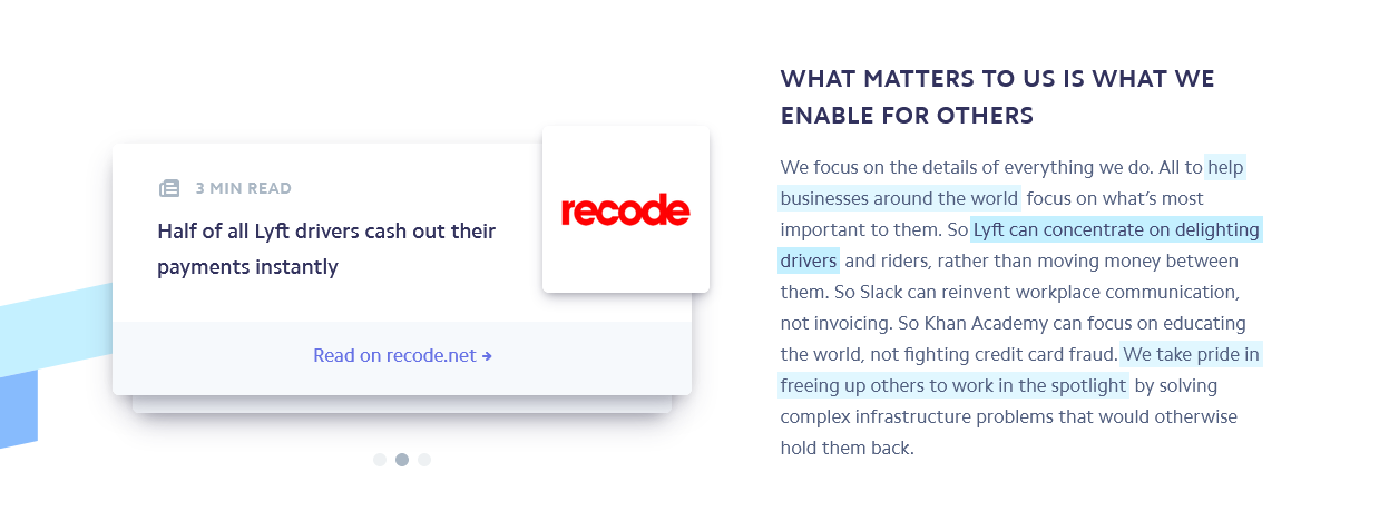 Someone suggested I walk through the Stripe site and explain why their site is so good. Here are five things they do: