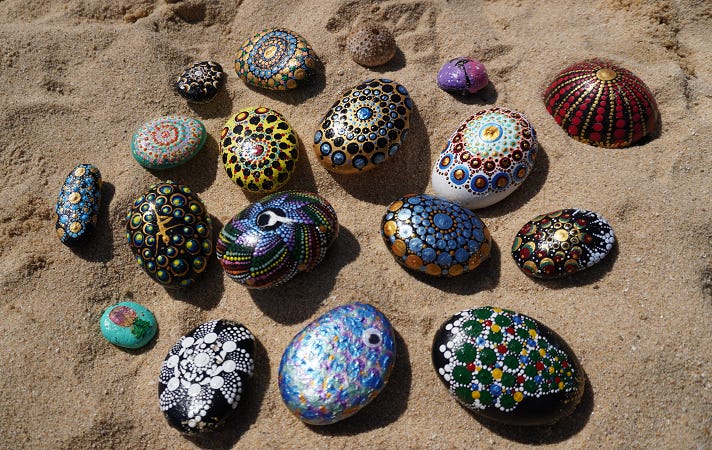 This week’s picture features Angie’s rock painting creations a hobby she picked up only a few months ago. Crazy!
