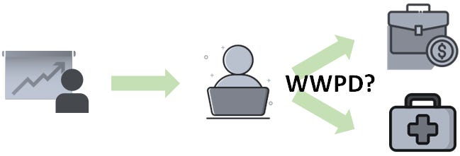 While on parental leave, I had two jobs reach out to me and I applied the “What Would Paul Do Framework?” The first was Healthcare Startup whose offer I ultimately accepted, and the second was actually working with portfolio companies of a PE firm. Both would allow me to avoid big company BS, but that's where the path diverged.